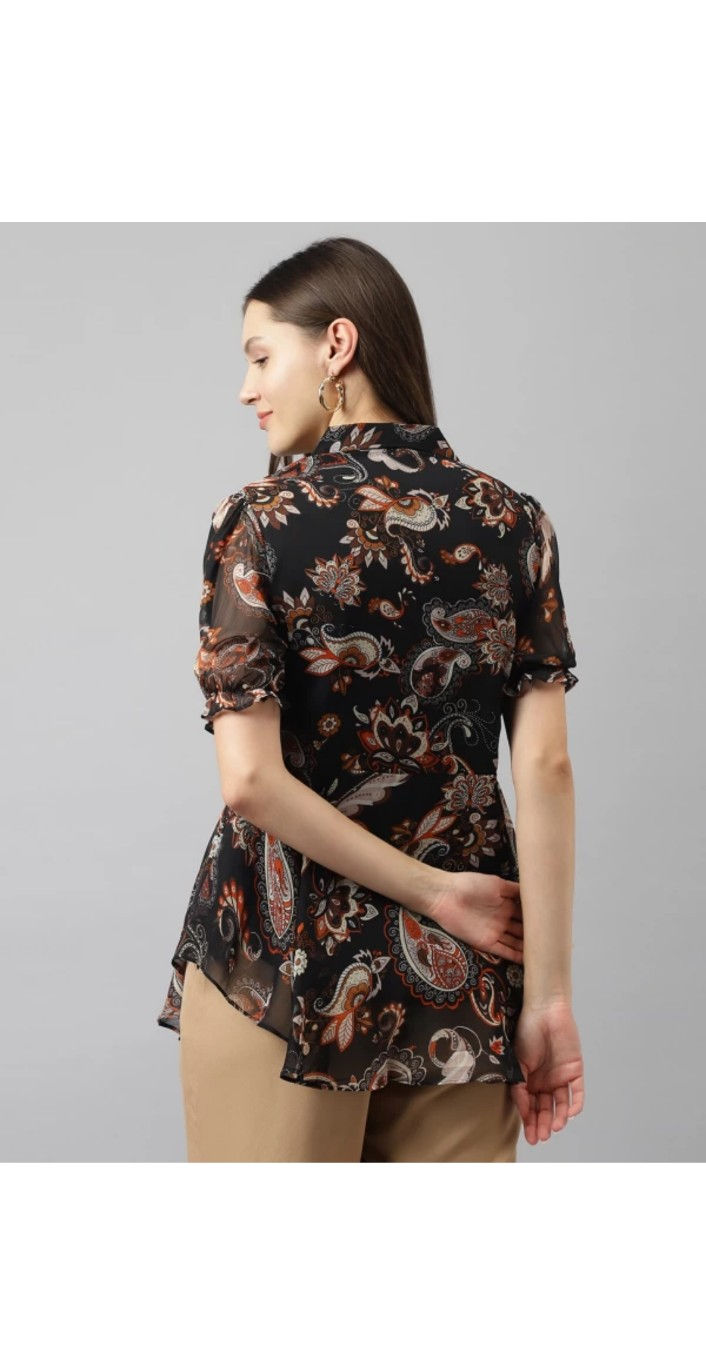Casual puff sleeves printed women multicolor top